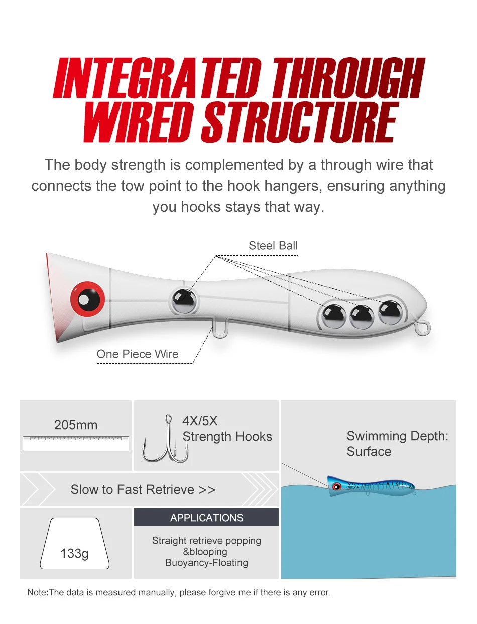 Noeby Big Game Popper 205mm 133g Fishing Lure Topwater Wobbler Artificial Hard Bait for Tuna GT Saltwater Surface Fishing Lures