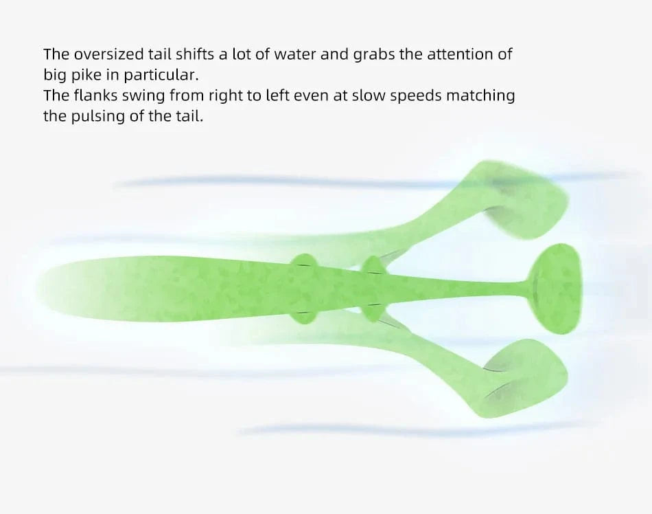 The oversized tail shifts a lot of water and grabs the attention of big pike in particular.