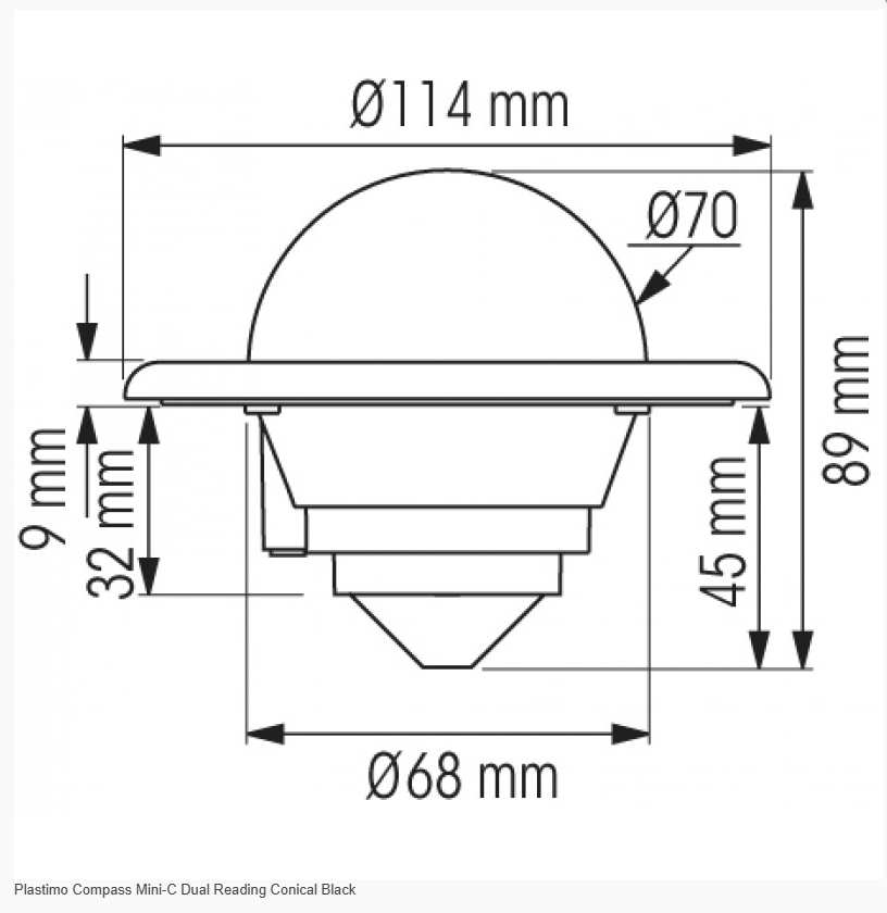 Plastimo Compass Mini-C Dual Reading Conical Black. Multi-purpose compass - dinghy sailing, cruising, powerboating