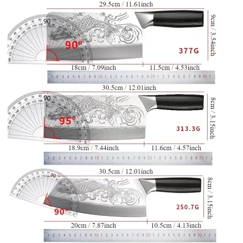 Weight: about 250.7g(Chef knife)/377g(Bone knife)/313.3g(Slicing knife)