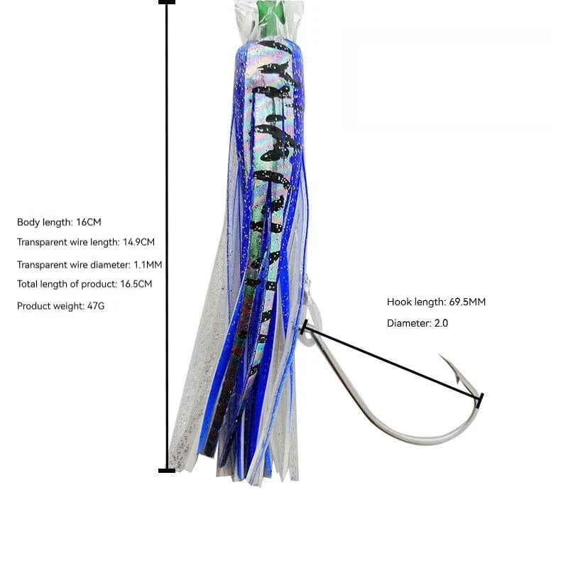PROBEROS Trolling Skirt Lure 16cm 47g Fishing Lures for Deep Sea Big Game Marlin Tuna Rigged Bionic Squid Bait Octopus Soft Lure