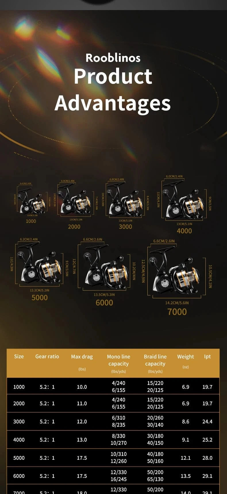 ROOBLINOS RY Spinning Reels Saltwater Freshwater Fishing Reel Ultralight Metal Frame Smooth And Tough High Speed Fishing Reels