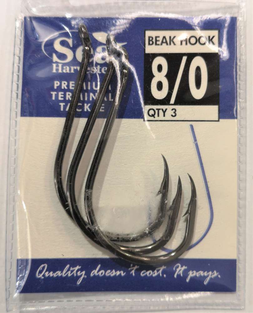 The Sea Harvester Black Beak Hooks are versatile hooks that are used for rigging dead or live baits. Each hook is incredibly strong yet lightweight with a chemically sharpened point. These quality hooks are great for catch and release, as the majority of the time, the fish are hooked in the mouth and not gut-hooked.