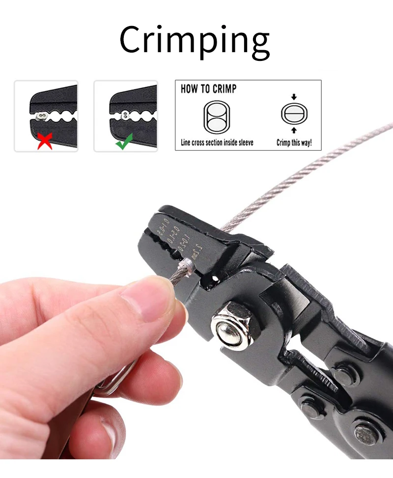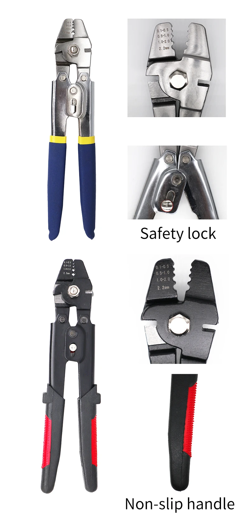 Application: Crimping tool coordinate with barrel ferrule can be widely used for wire rope, cable line dog leashes and etc