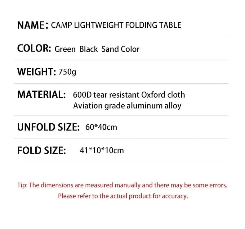 TARKA Camping Oxford Fabric Table Folding Desk Lightweight Foldable Cloth Tables Outdoor Fishing Picnic Desk Camping Equipment