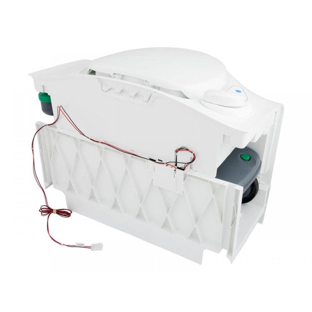• A quiet yet powerful electric flushing system with full bowl coverage – 12V