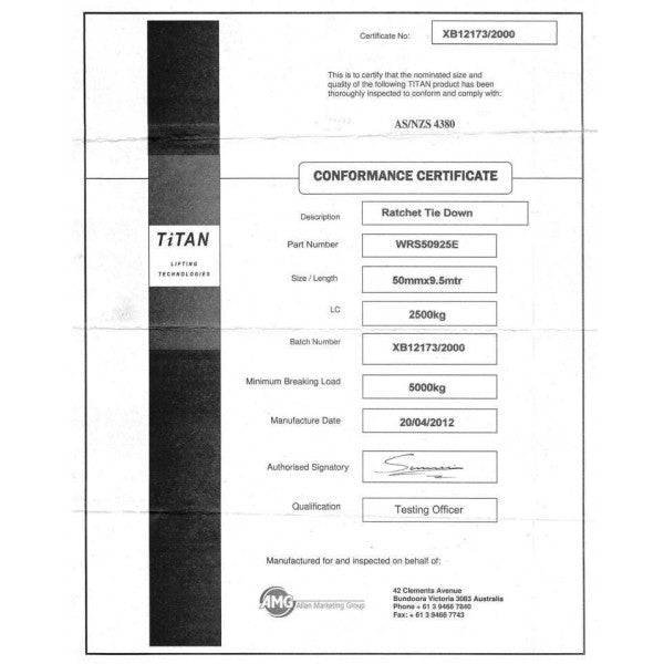 Tiedown - 2.5T Titan Blue 9.0M - 2500kg Lashing Capacity (LTSA Guidelines) - 50mm Wide Industrial Webbing
