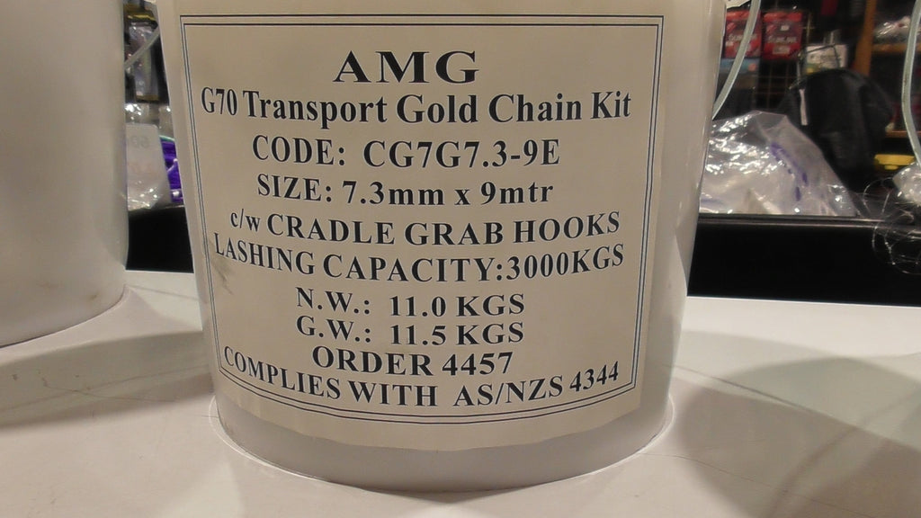 Transport Chain Set 12kg 7.3mm x 9m Set - Lashing Chain with Cradle Grab Hook at Both Ends Supplied with Batch I.D. Tag and Certificate