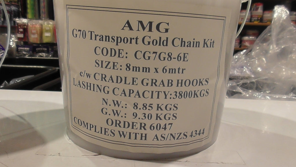 Transport Chain Set 9kg 8.0mm x 6m Set - Lashing Chain with Cradle Grab Hook at Both Ends Supplied with Batch I.D. Tag and Certificate
