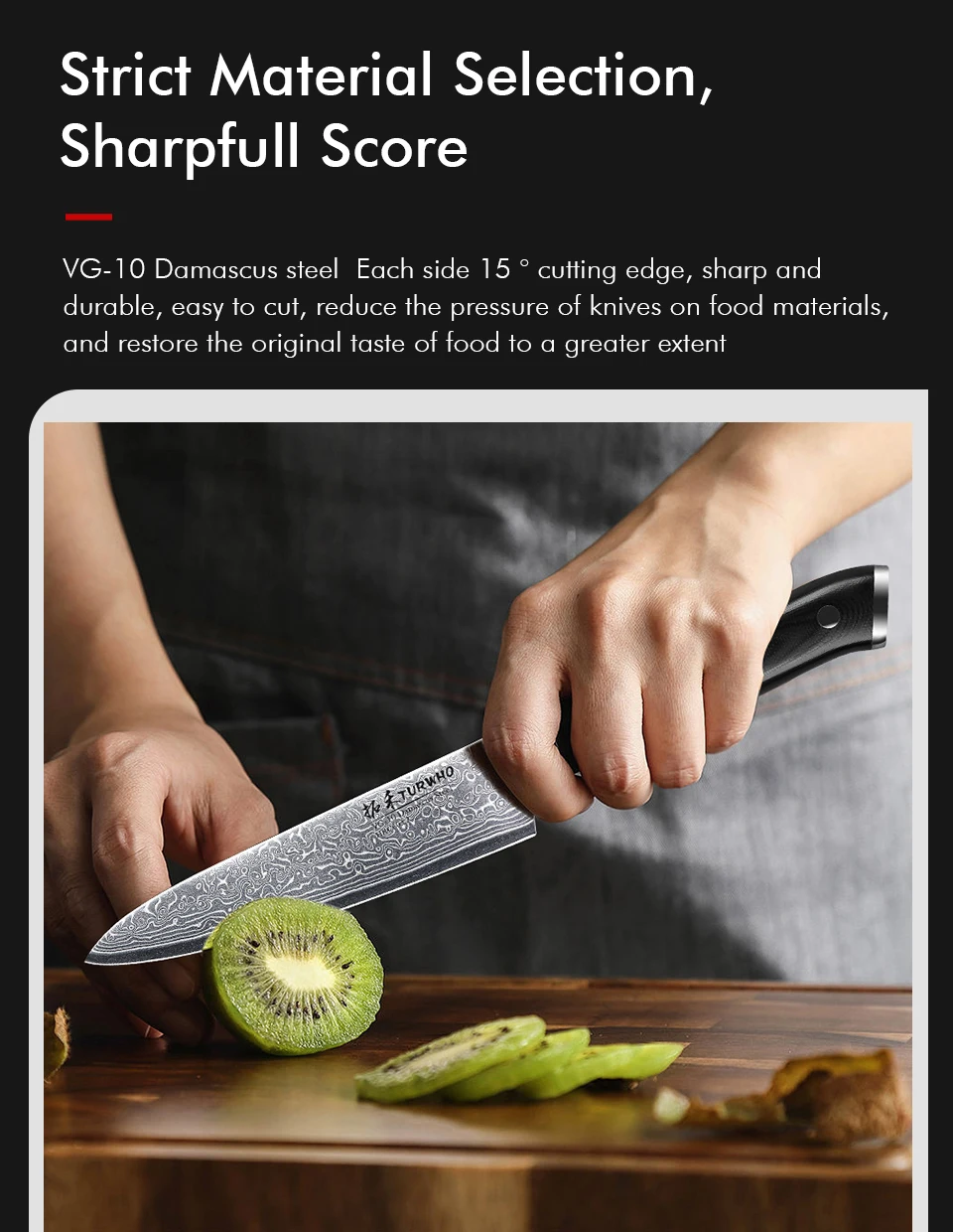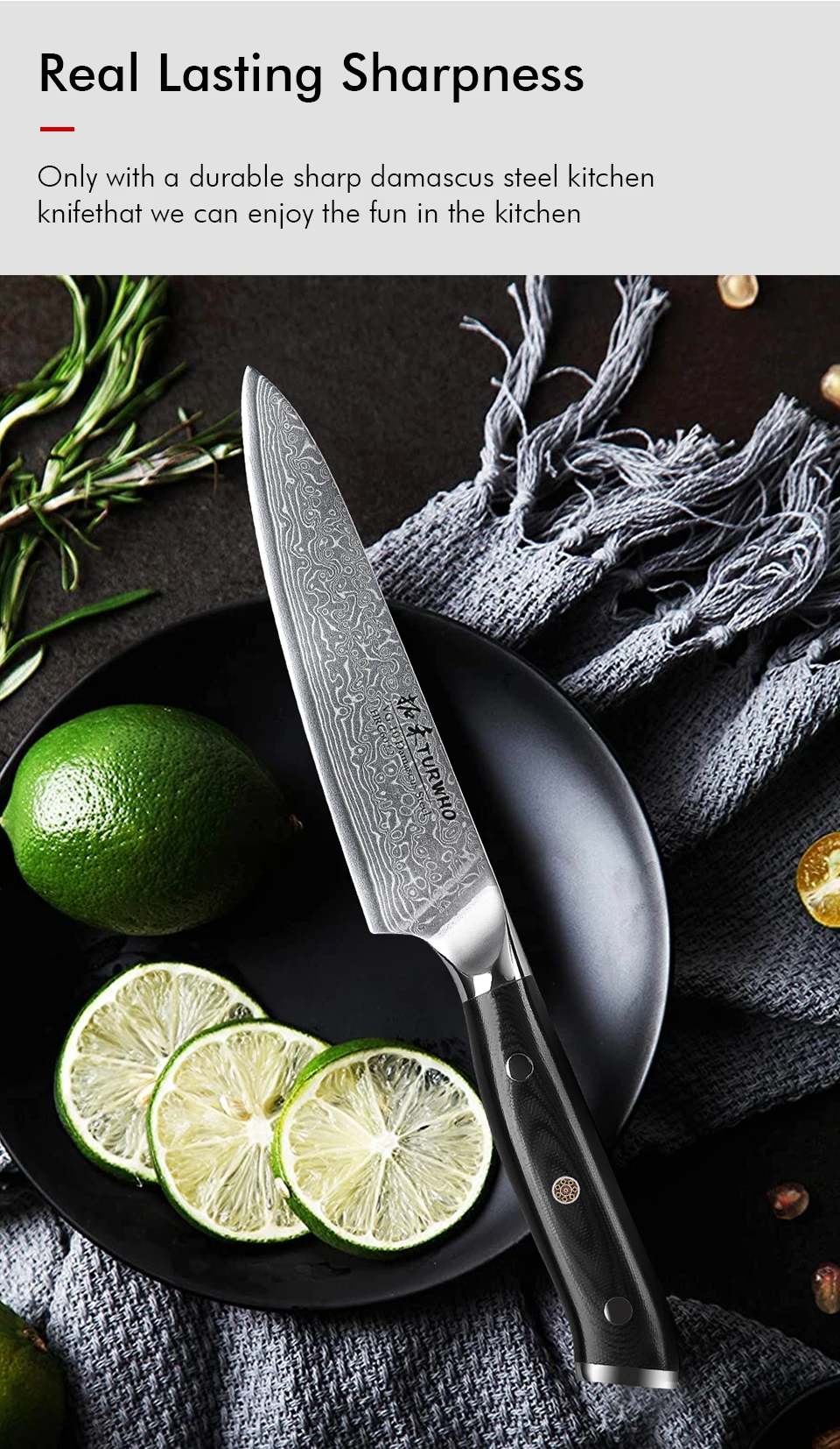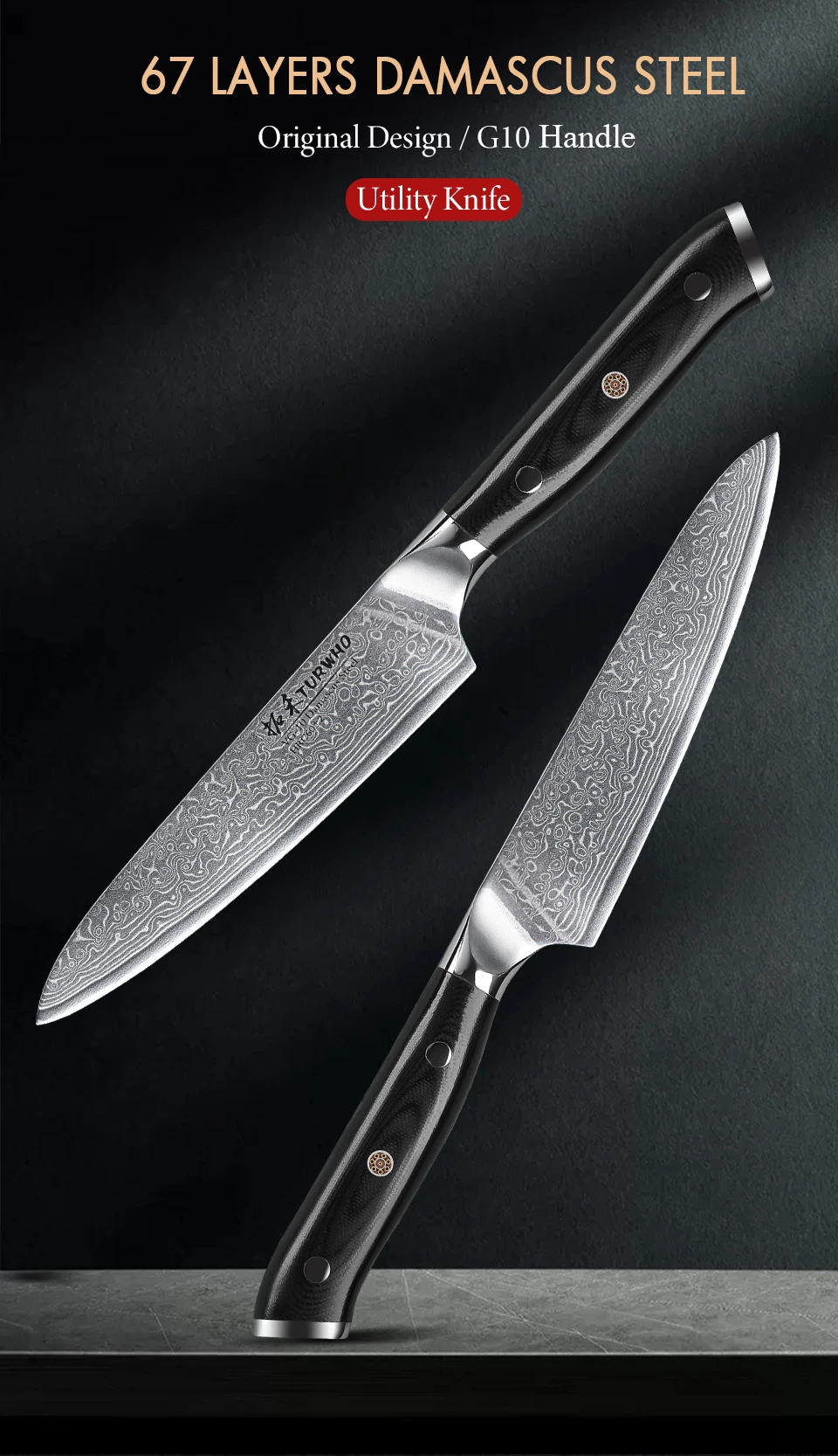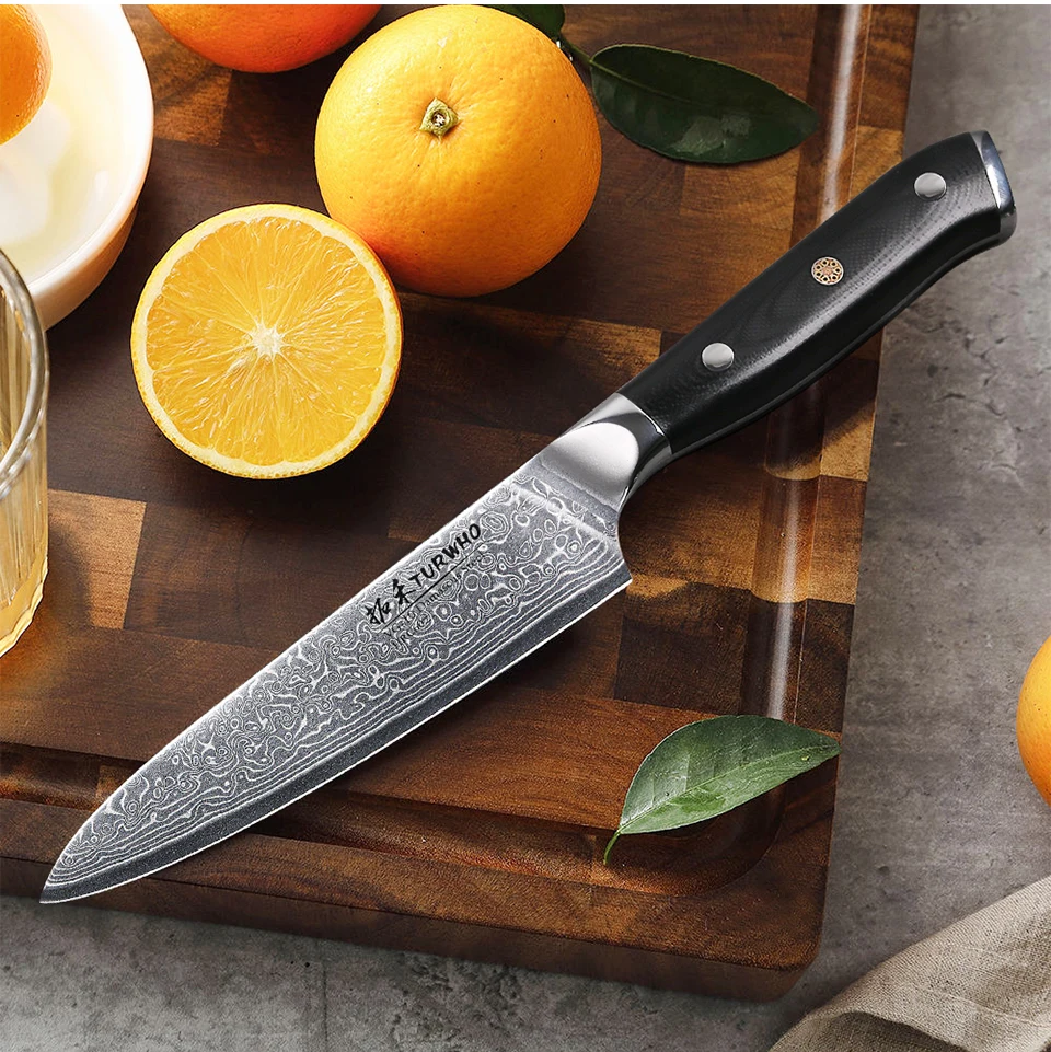 TURWHO 5 Inch Kitchen Utility Knife Damascus Steel Professional Chef Knife Peeling Fruit Knife Vegetable Meat Fish Cooking Tools