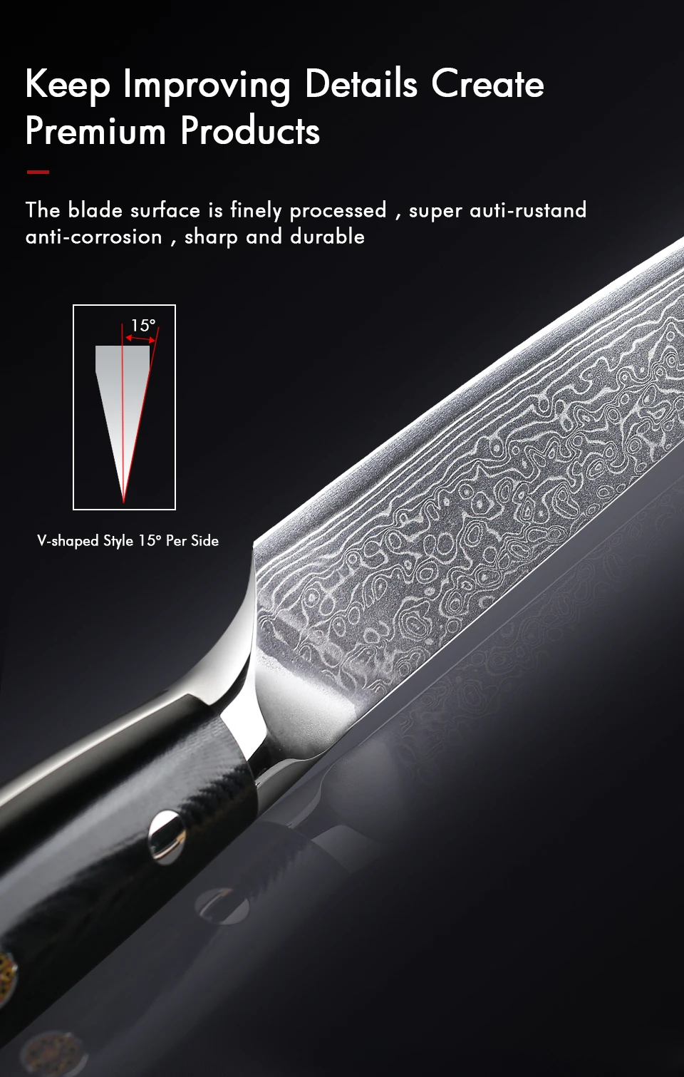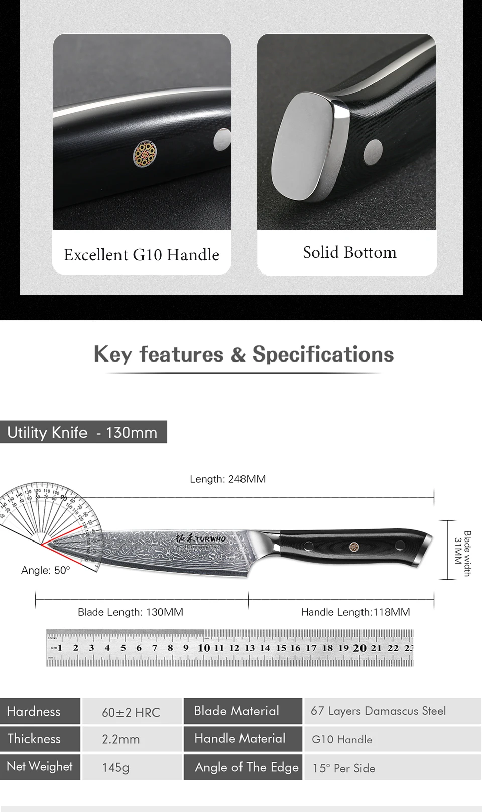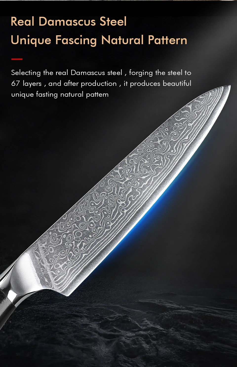 TURWHO 5 Inch Kitchen Utility Knife Damascus Steel Professional Chef Knife Peeling Fruit Knife Vegetable Meat Fish Cooking Tools