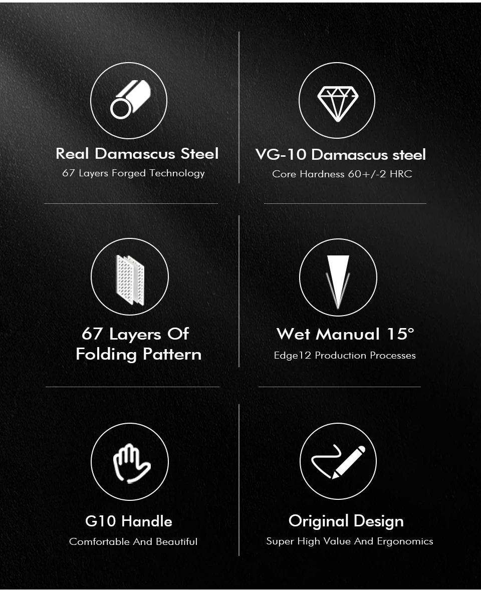 Surface Technology: Polished, High-end Appearance Features: Sharp and durable, super rust-proof, light energy Sharpness grade: Cutting force grade: 6.0-8.0N international standard.