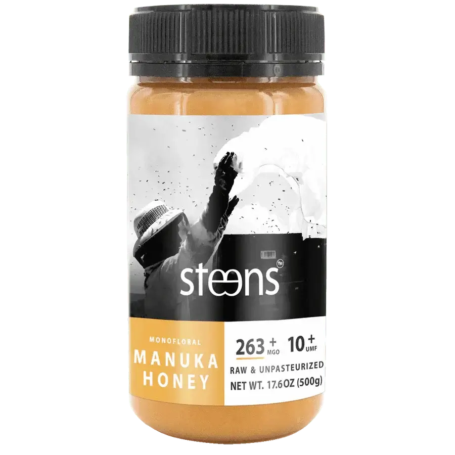 Our UMF 10+ Raw Multifloral Manuka Honey 500g is extracted using Steensâ unique Wholecomb Technology⢠from hives located in remote areas of New Zealand. This process retains more bee bread and pollen, preserving the honeyâs natural antibacterial, antimicrobial, and antifungal properties. It is 100 % raw, unpasteurised, and free from additives, colours, or preservativesâjust pure Manuka honey, straight from the hive.