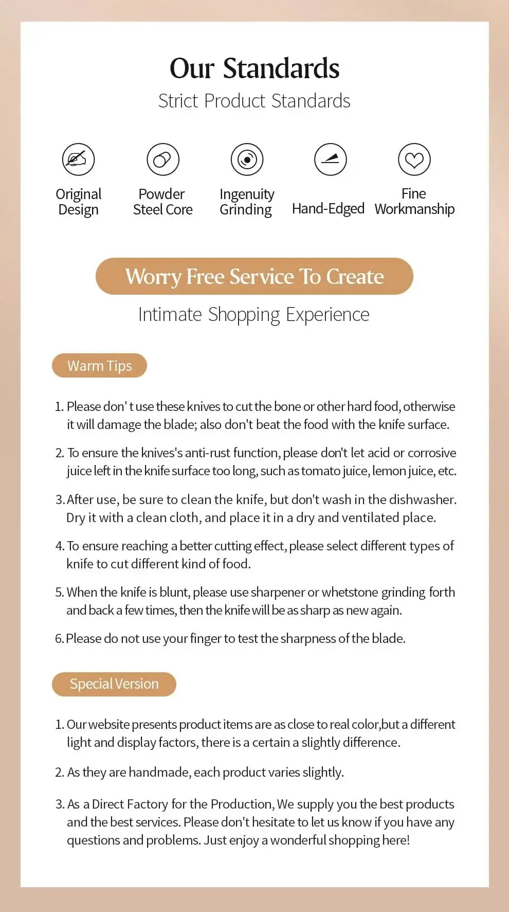 Handle Material: High quality olive wood + copper flower nails