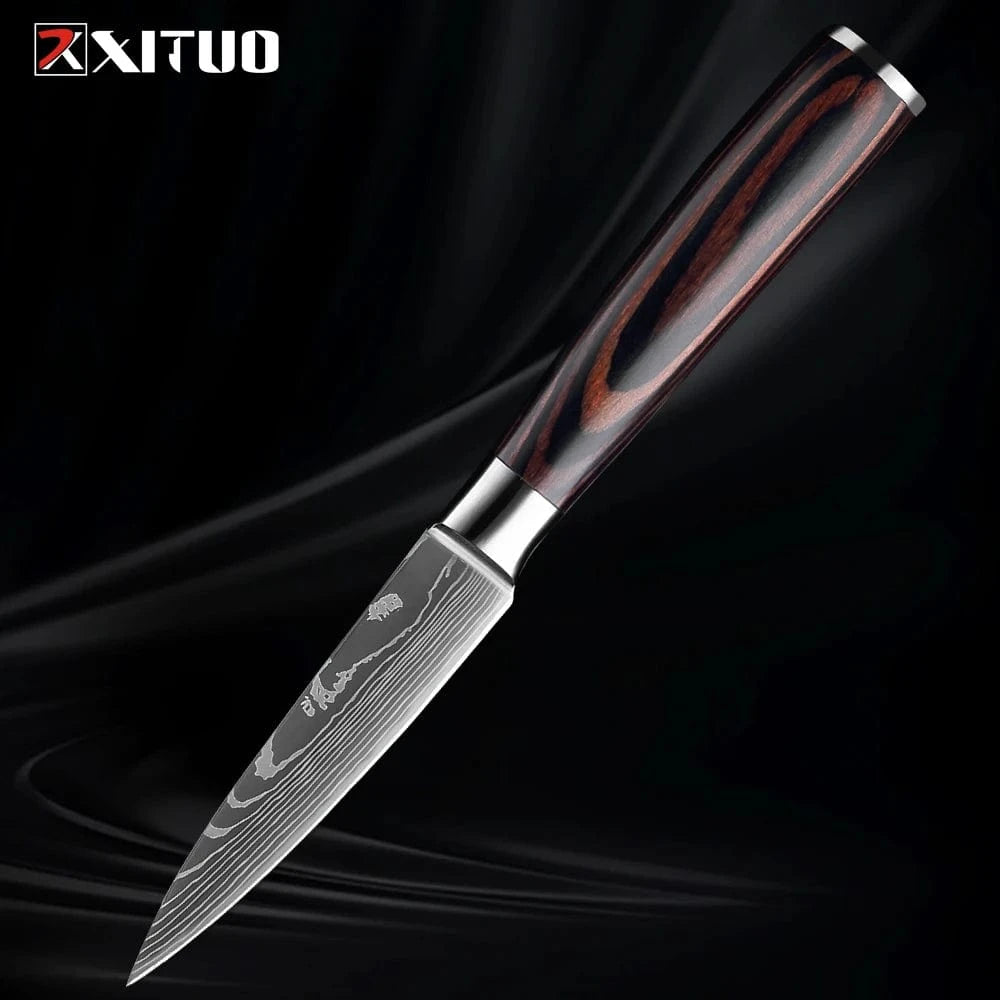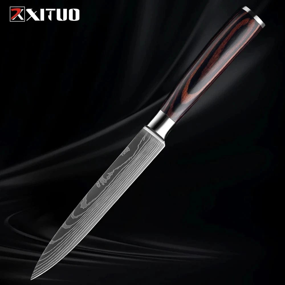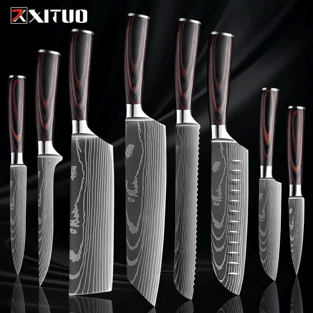 XITUO Kitchen Knife Set 1-9PCS,7Cr17Mov Stainless Steel Sharp Chef Knife Santoku Knife Fruit knife Ergonomic Pakkawood Handle