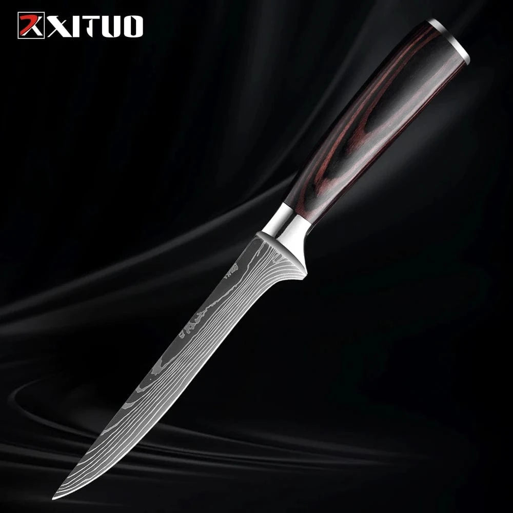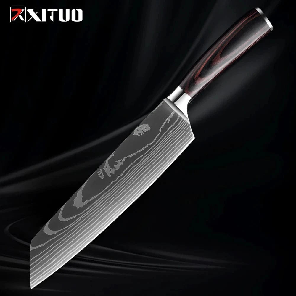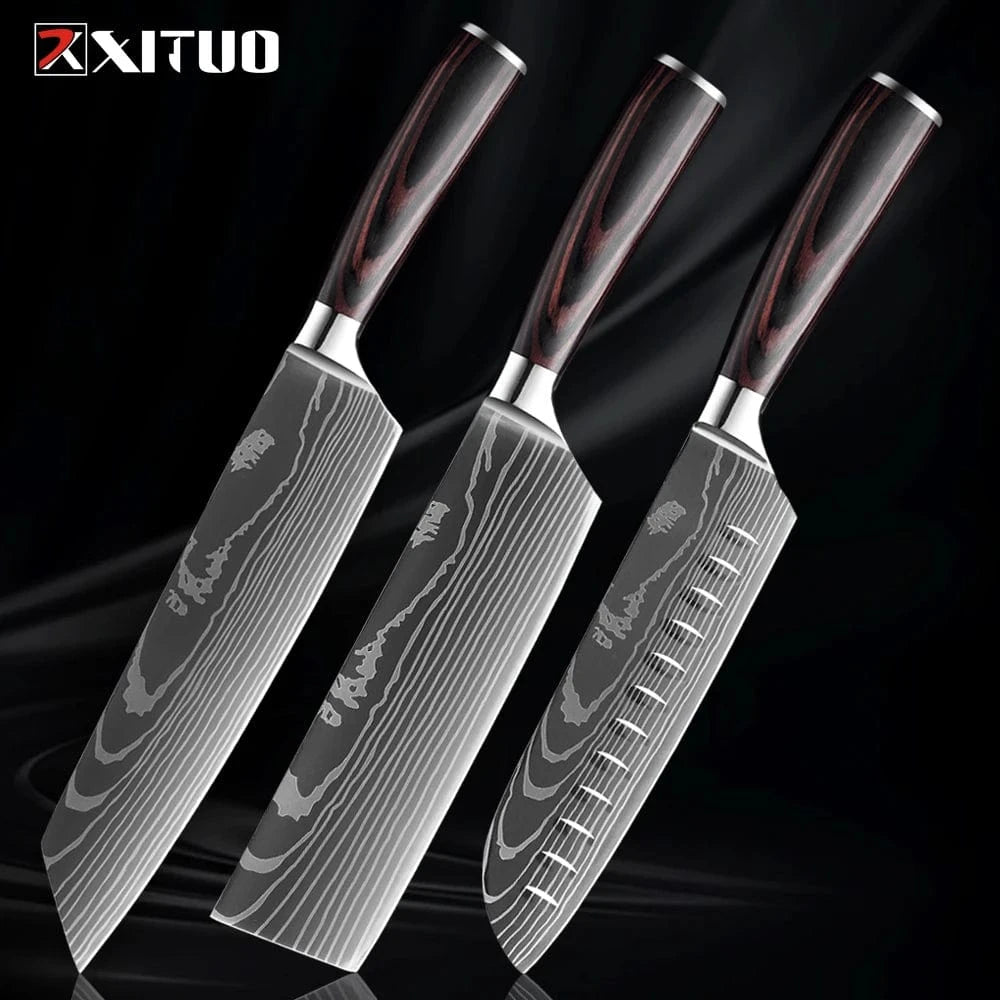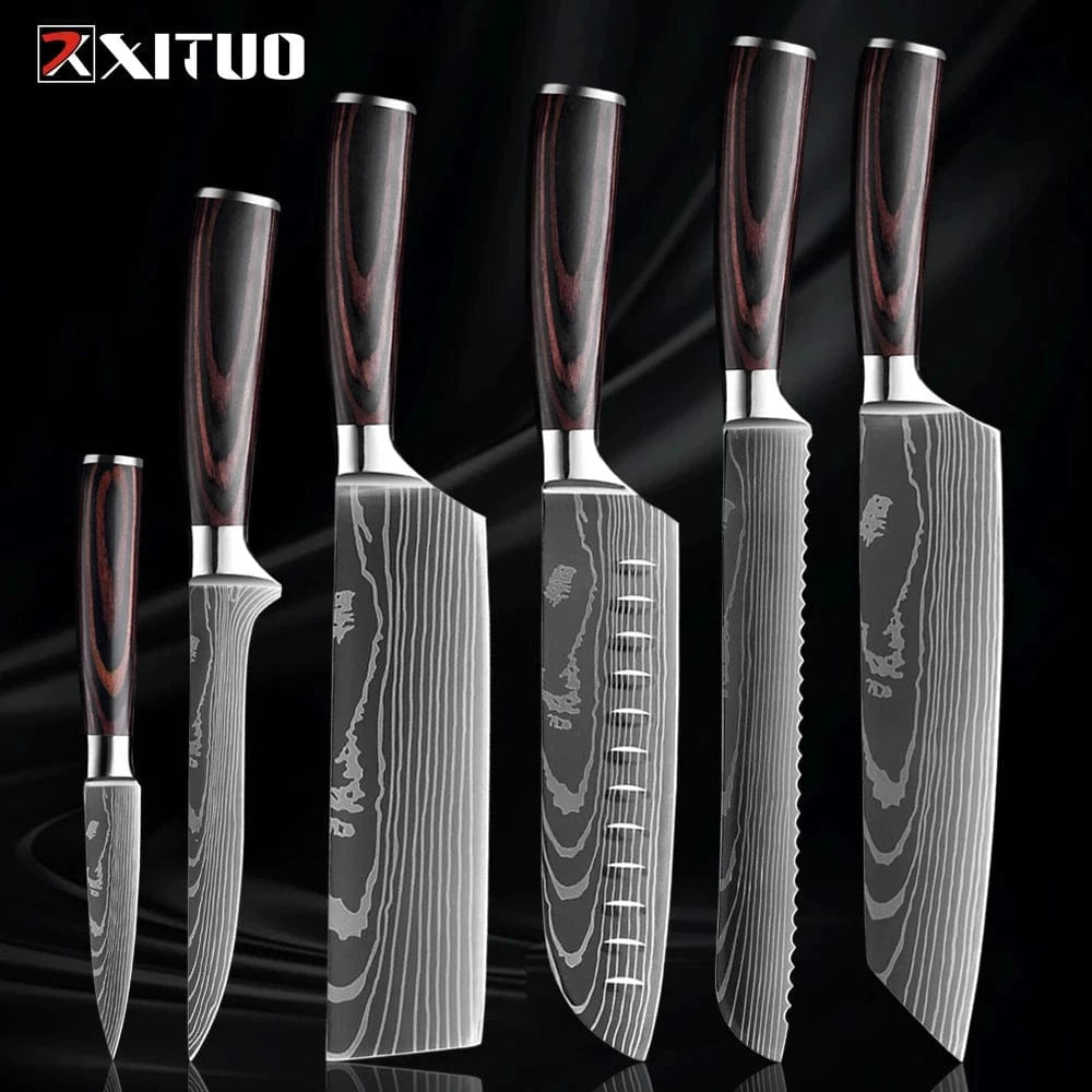 XITUO Kitchen Knife Set 1-9PCS,7Cr17Mov Stainless Steel Sharp Chef Knife Santoku Knife Fruit knife Ergonomic Pakkawood Handle