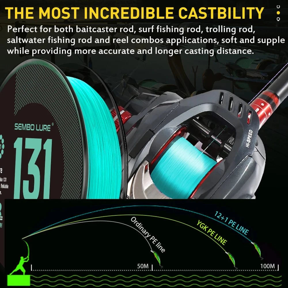 – ZUKIBO Sembo 131 braided fishing lines change fishing for spinning reel and baitcasting presentations. SAMBO 12+1 strands of ultra-high molecular UHMPE fibers are crossed 36 times every inch (36 PPI) creating the smoothest, most supple and longest casting braided line for these techniques.