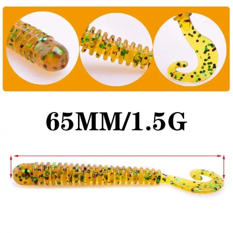 20pcs/Lot Fishing Wobblers Worm Curly Jig Soft Lures 6.5cm 1.5g Smell With Salt Silicone Artificial Bait Swimbaits Bass Tackle