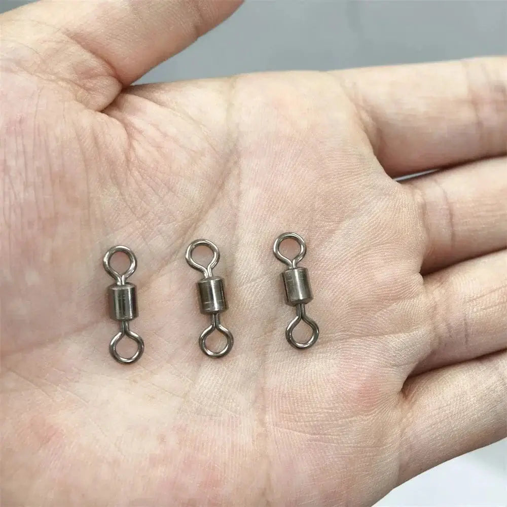 50Pcs/Lot Fishing Ball Bearing Swivel Safety Snap solid Ring Hook Connector Barrel Rolling Swivel Tackle Fishing Accessories