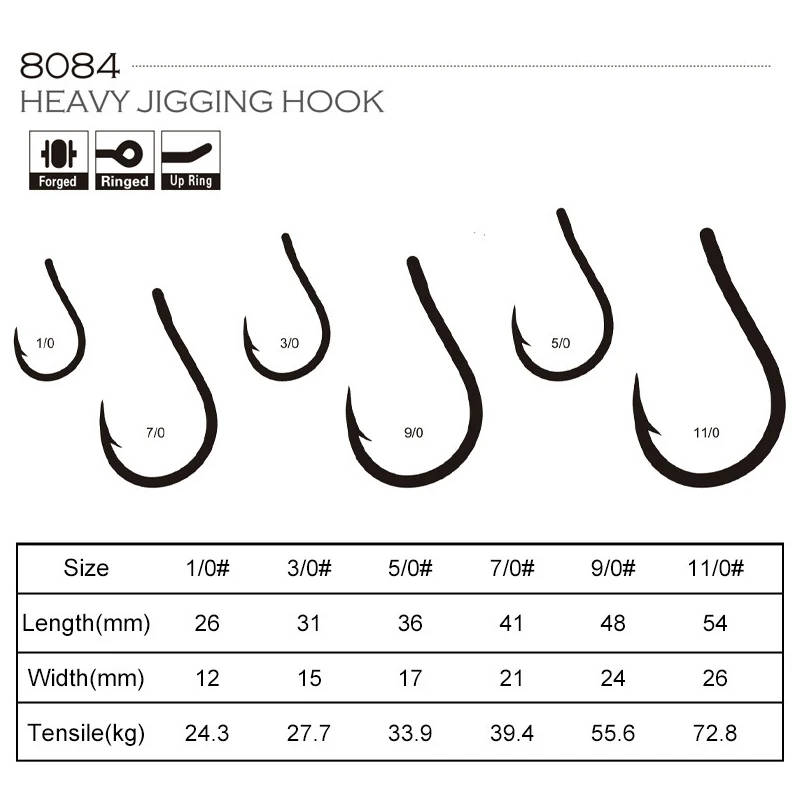 8084 Bulk Fishing Hooks 4x Strengthened Sea Fishing Tippet Hooks Single Hook Barbed with Ring Deep Sea Big Game Hooks Wholesale