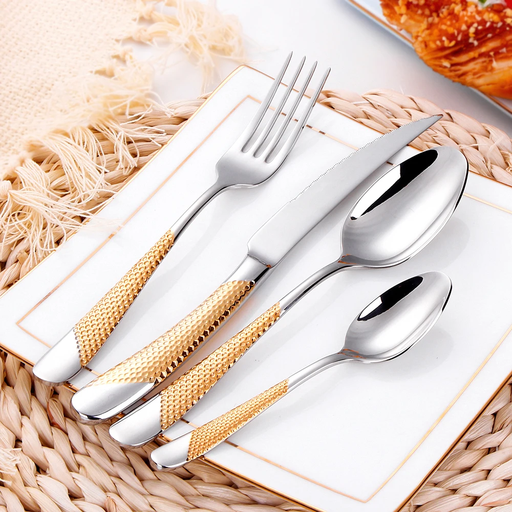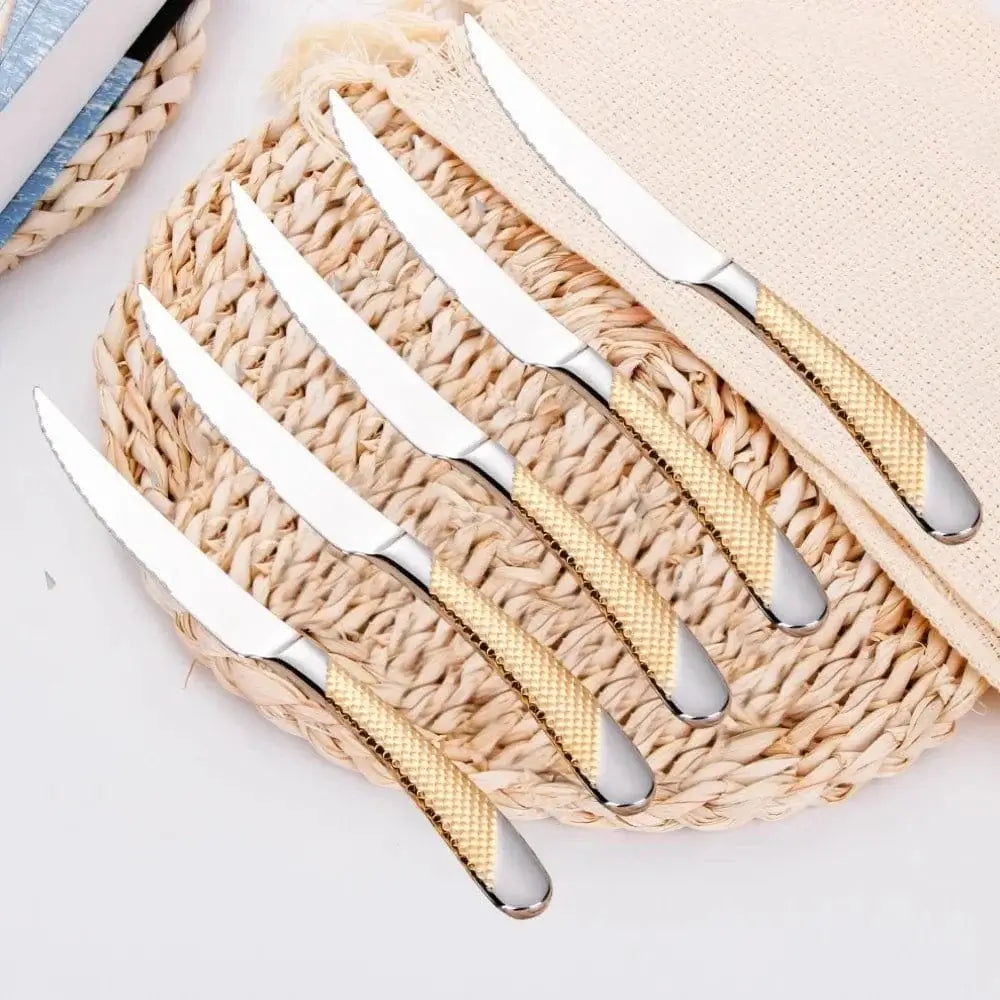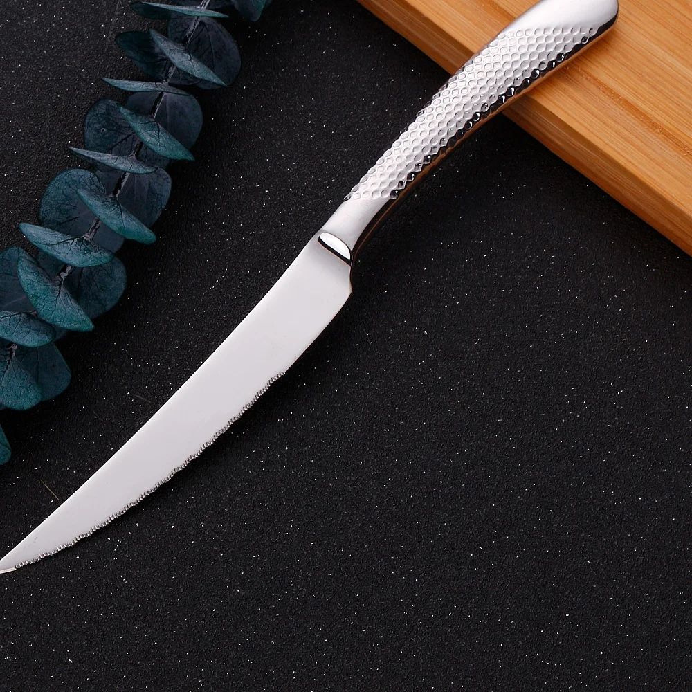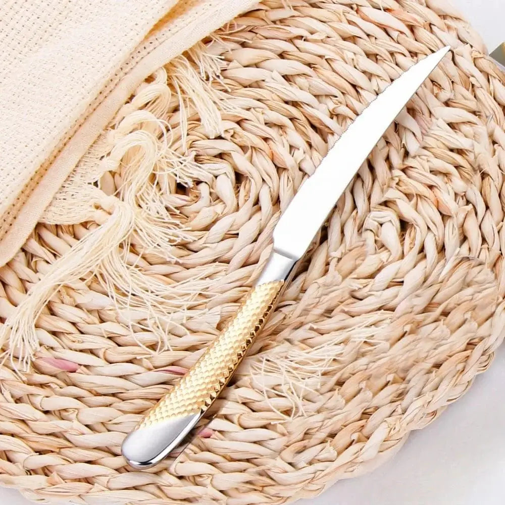 9" Ultra-Sharp 2 in 1 Glossy Steak Knife Dinner Knife Set With Gold Plated Hammered Handle Table Knife Cutlery Dishwasher Safe