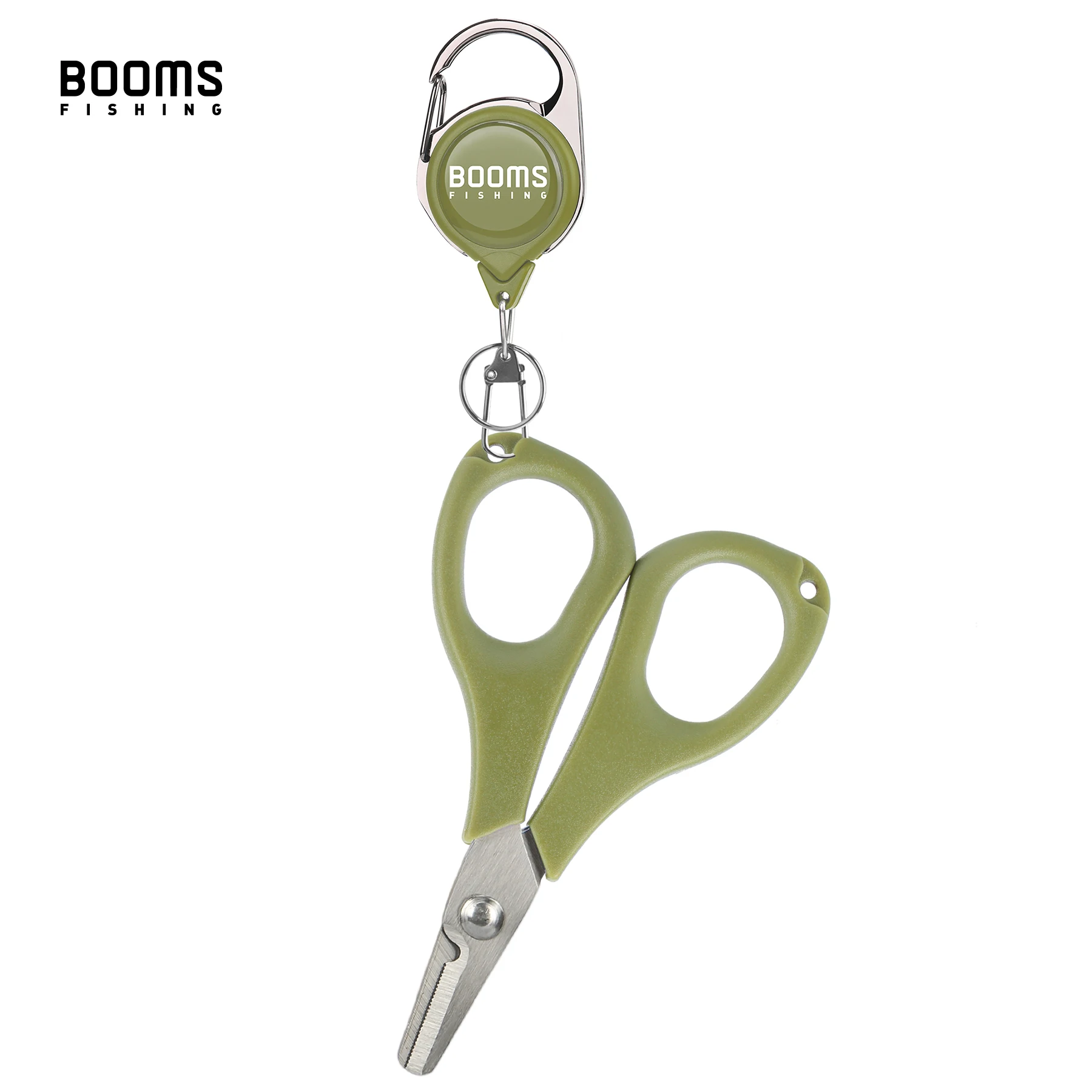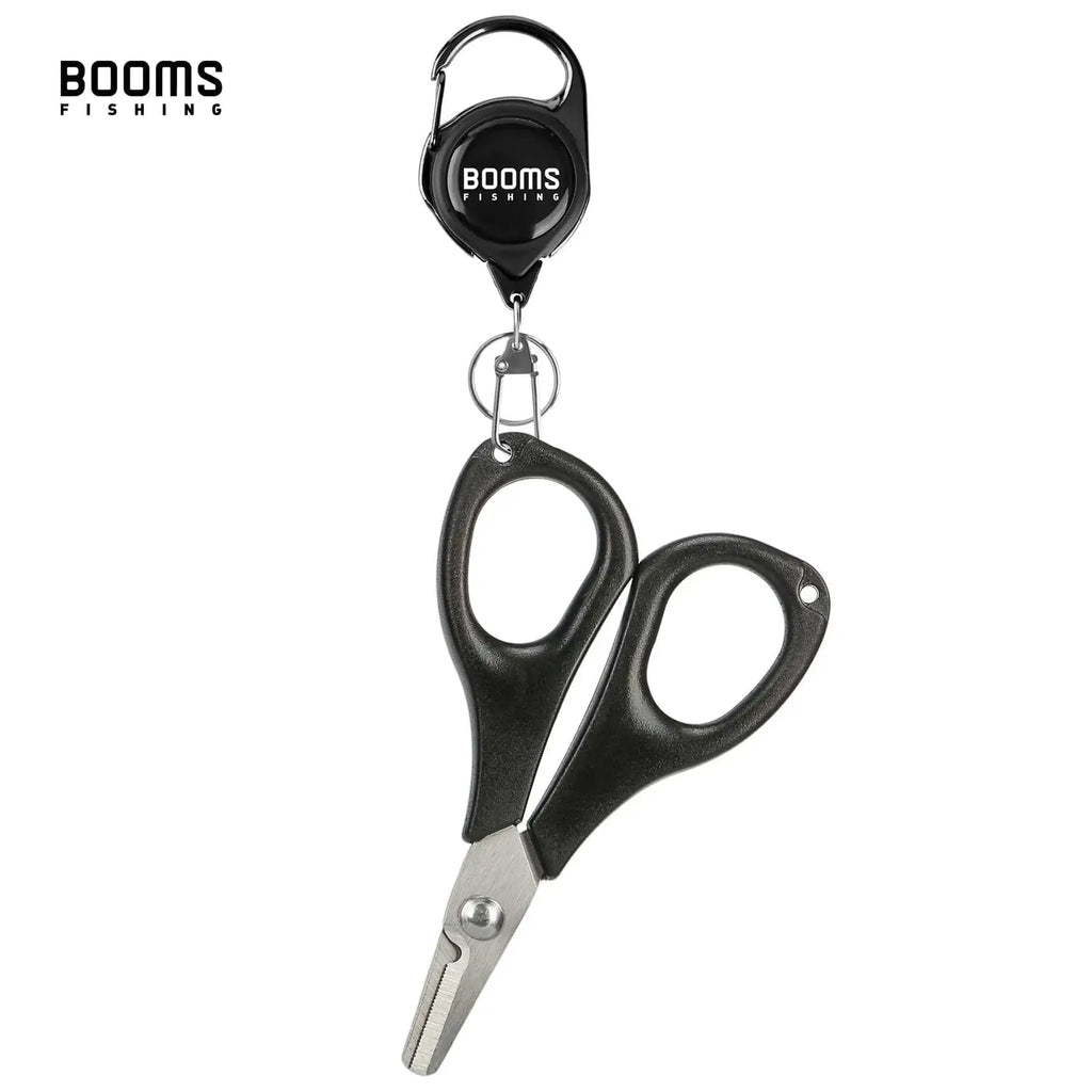 Booms Fishing S01 Fishing Scissors for Braided Line Fishing Line Cutter Fishing Serrated Shears with Retractor Split Ring