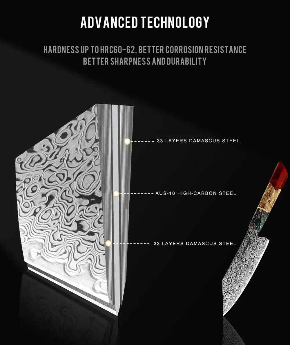 Chef Knife Japanese Damascus AUS-10