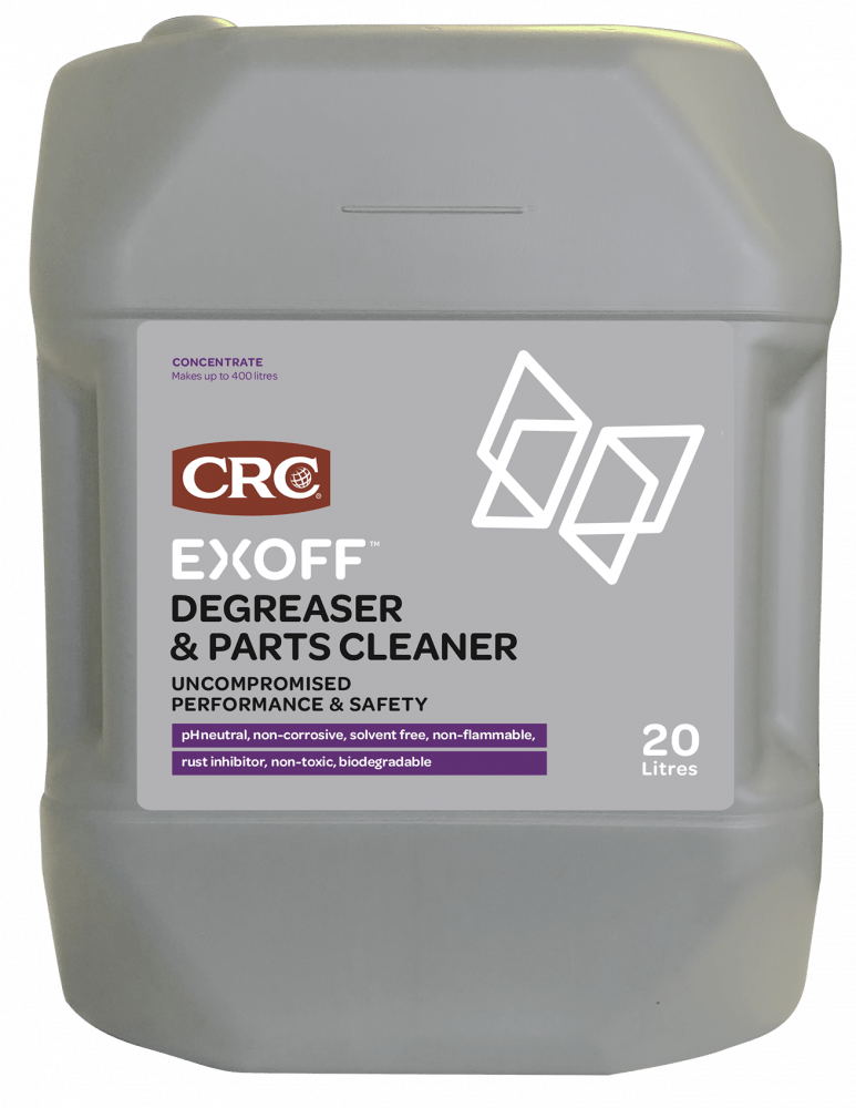 The CRC Exoff Range provides uncompromised performance and safety. Next-generation high-performance cleaning technology, pH neutral, safe on surfaces, users and the environment. Formulated to penetrate and dissolve tough grease, oil and contaminants for easy removal – safely. Use confidently on all metals and alloys – will not damage bright metals including aluminium and brass. Safe on fibreglass, glass, plastics, rubber, painted surfaces, laminates. For use in heavy industry, automotive and service applications, workshops and garages. Ready to use, no mixing required. Easy use dual applicator trigger – jet or wide spray.
