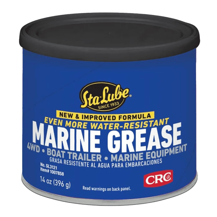 CRC Marine Grease is a tacky blue grease specially formulated for use on boat trailers and other marine equipment.