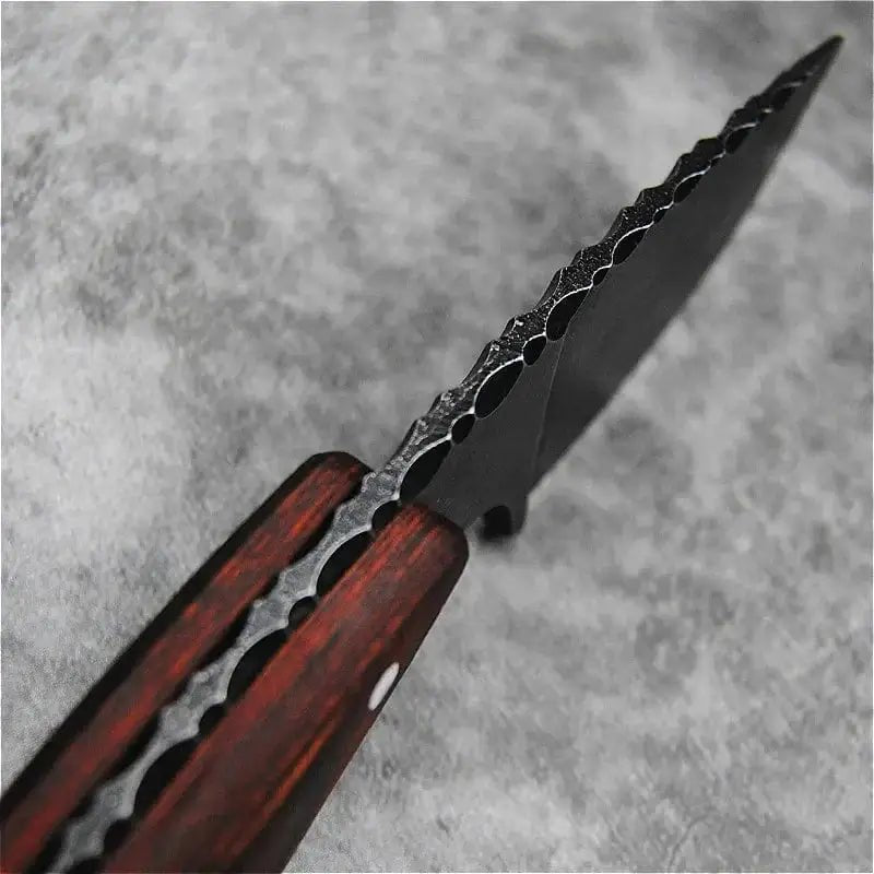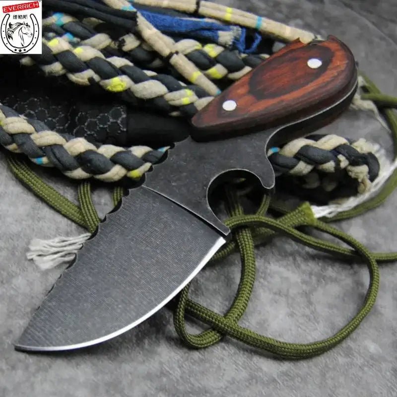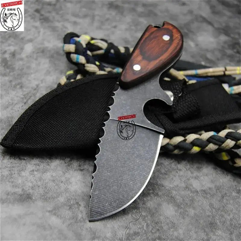 DEHONG Stone wash D2 steel Japanese straight knife, sandalwood handle outdoor hunting tactics straight knife + knife sleeve