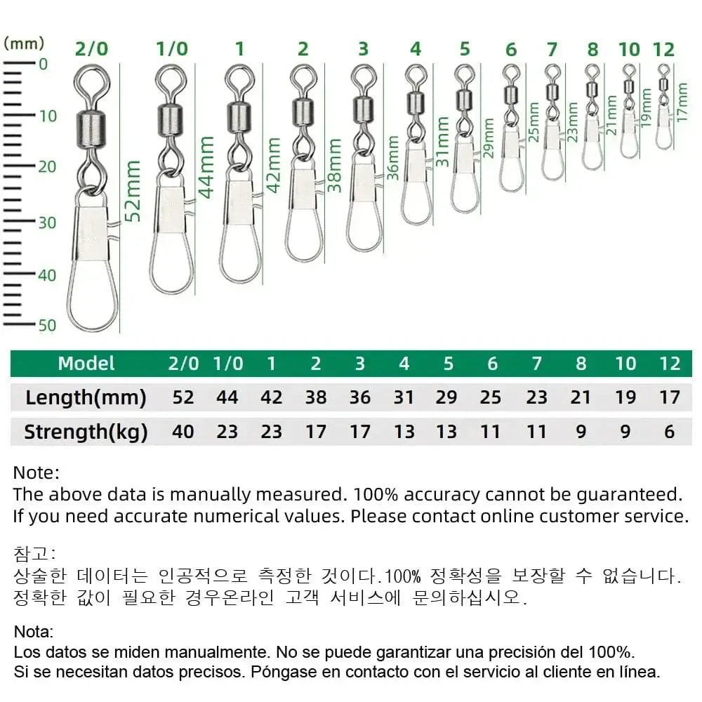 50pcs Fishing Connector Rolling Swivel with Interlock Snap Stainless Steel Snap for Fishhook Lure Tackle Fishing goods