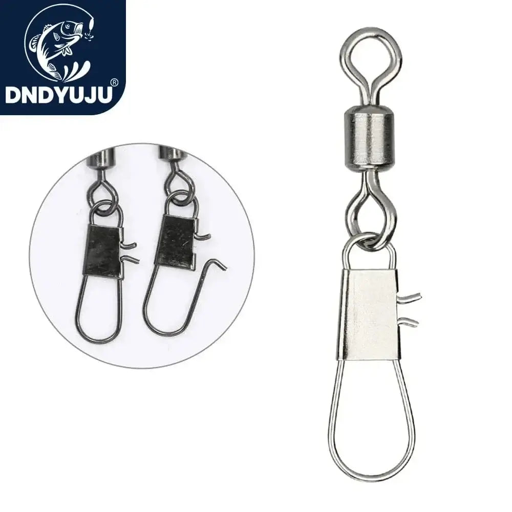 DNDYUJU 50pcs Fishing Connector Rolling Swivel with Interlock Snap Stainless Steel Snap for Fishhook Lure Tackle Fishing goods