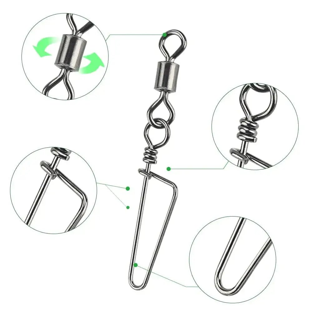 DNDYUJU 50pcs Fishing Rolling Bearing Swivels Solid Ring Interlock Snap For Fishhook Lure Fishing Connector Tackle Accessories