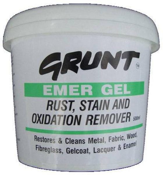 Removes heavy weathering and oxidation, rust and other stains from fibreglass gel coat, lacquer and enamel surfaces quickly as a flash. Although EMERGEL was first used on boats, it is very suitable for removing rust stains and heavy weathering from cars, caravans, motorhomes etc EMERGEL has countless uses.
