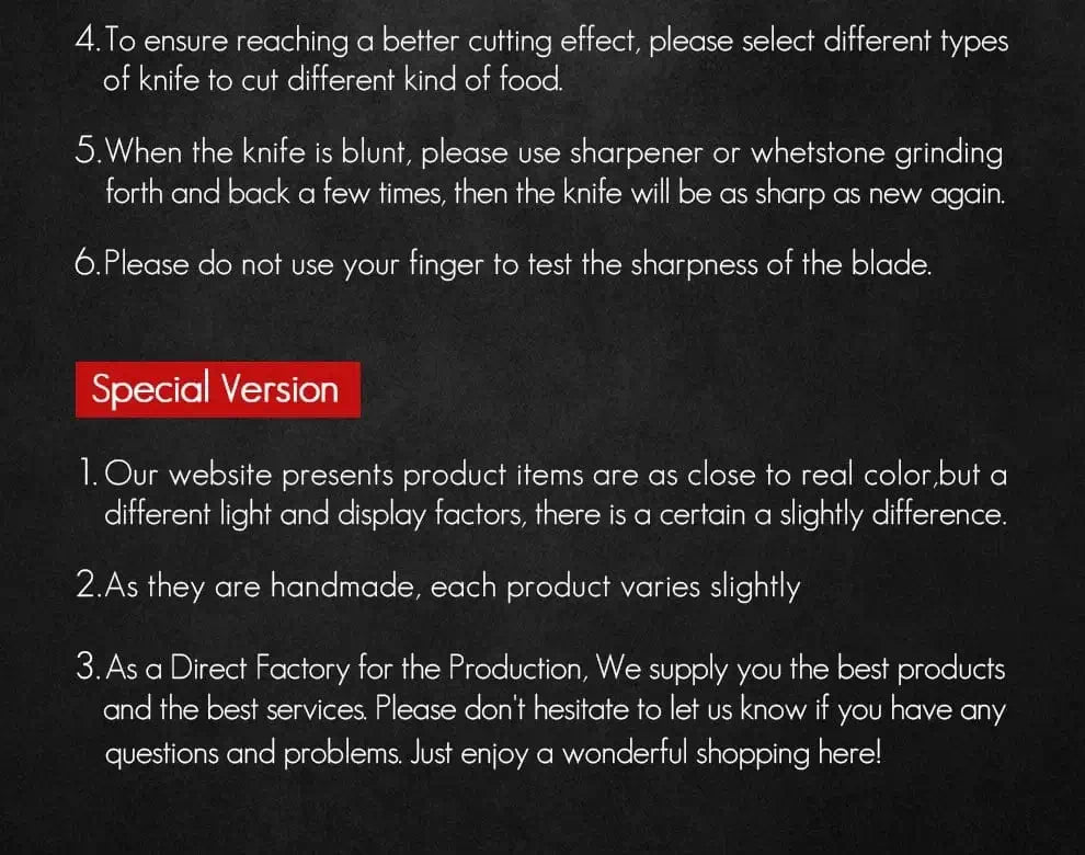 Handle Material:High quality figured sycamore wood handle & mosaic brass rivet