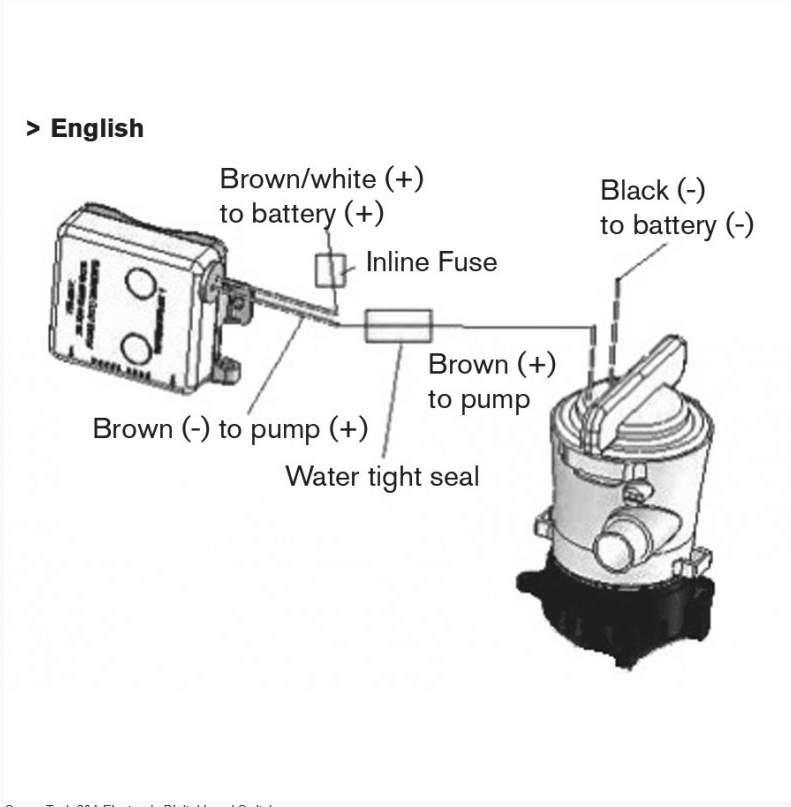 Ativates at a 50 mm (2”) fluid level and deactivates at a 20 mm (3/4”) fluid range. A five seconds delay prevents false starts.The switch is rated to handle all submersible pumps up to 20 amps at 12 or 24 volts.