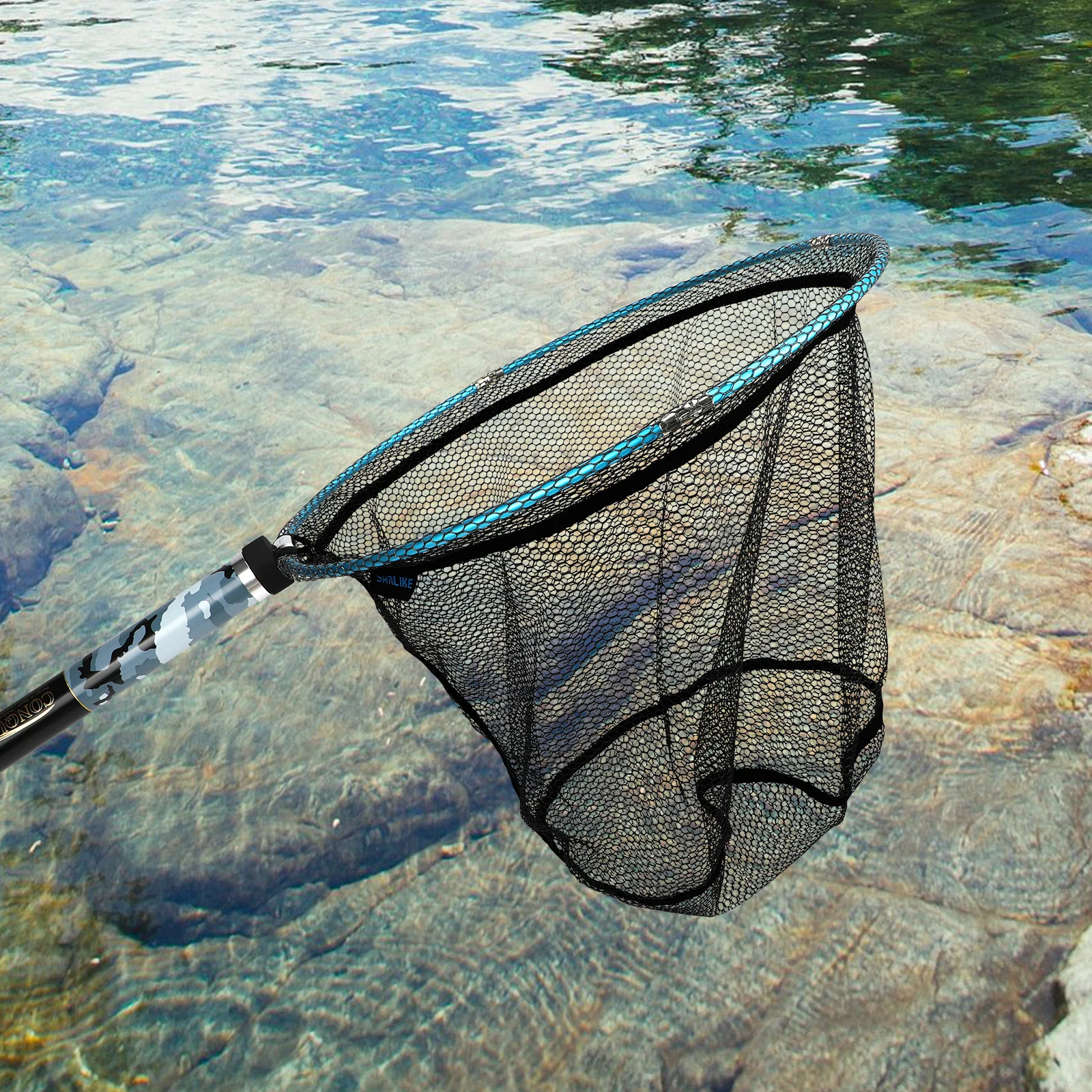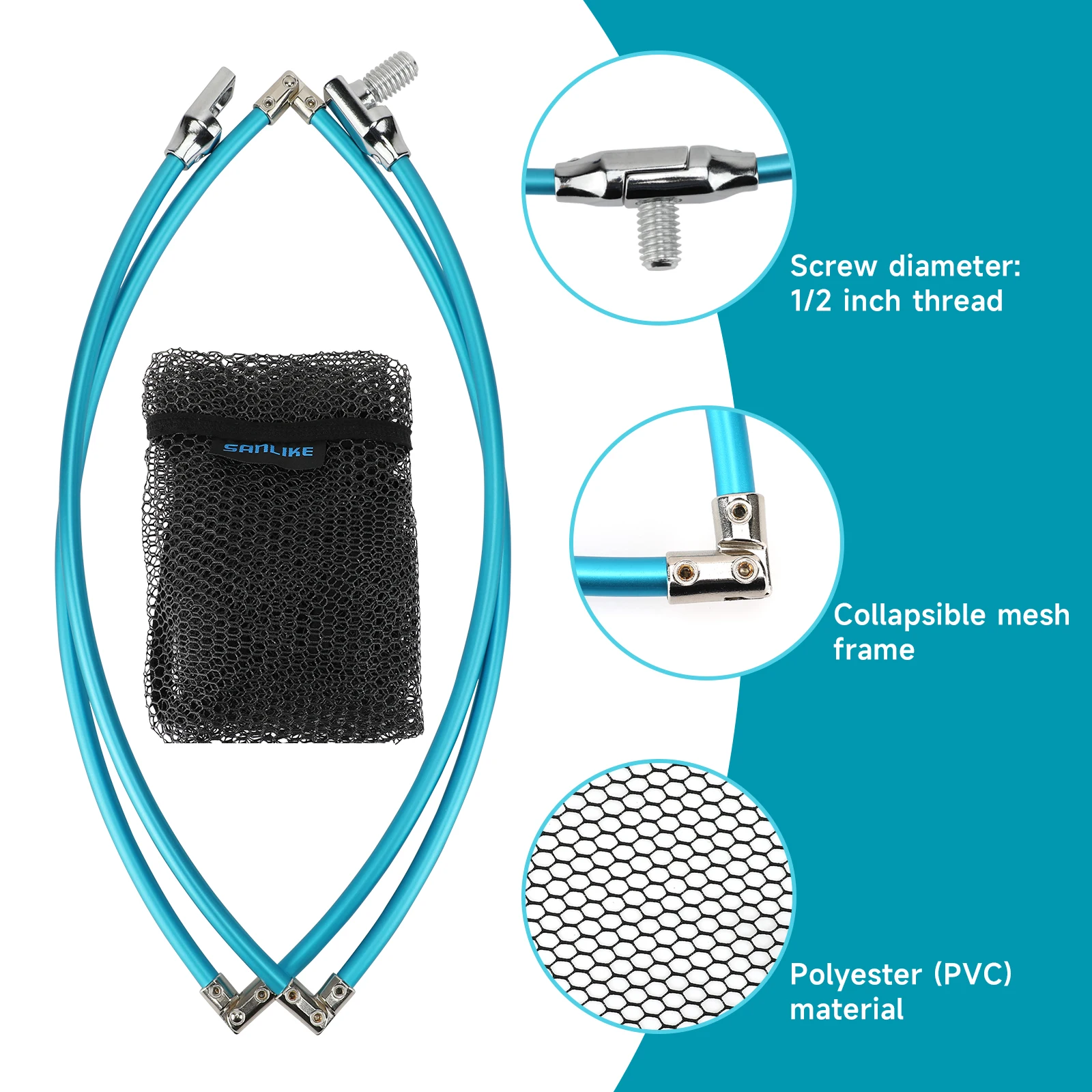 SANLIKE Fishing Net Collapsible Black Coated Dip Mesh Portable Handle Landing Net Aluminium Frame Fishing Tackle