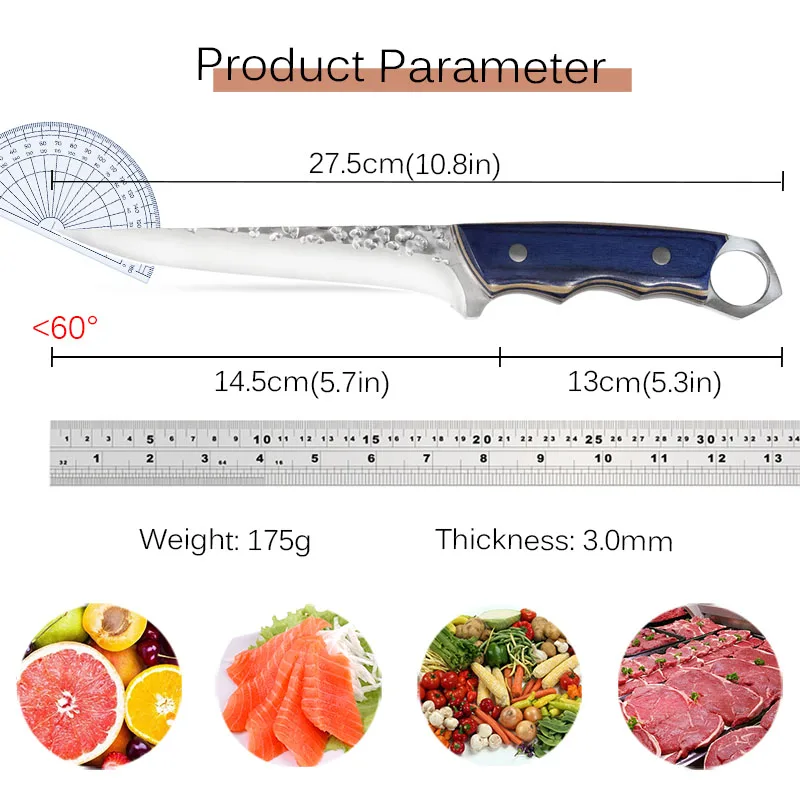 Stainless Steel Kitchen Chef Boning Knifes Handmade Fishing Knife Meat Cleaver Butcher Knife with knife Cover Kitchen Supplies