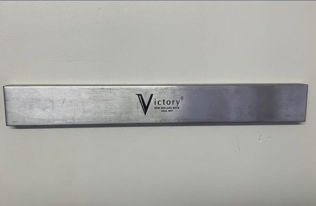 Magnetic Knife Rack, Stainless steel, L- 400mm perfect for keeping the knives off the bench and out of the drawers. Holds all styles of Victory Knives and your steel. Wall-mounted with hidden screws (included).