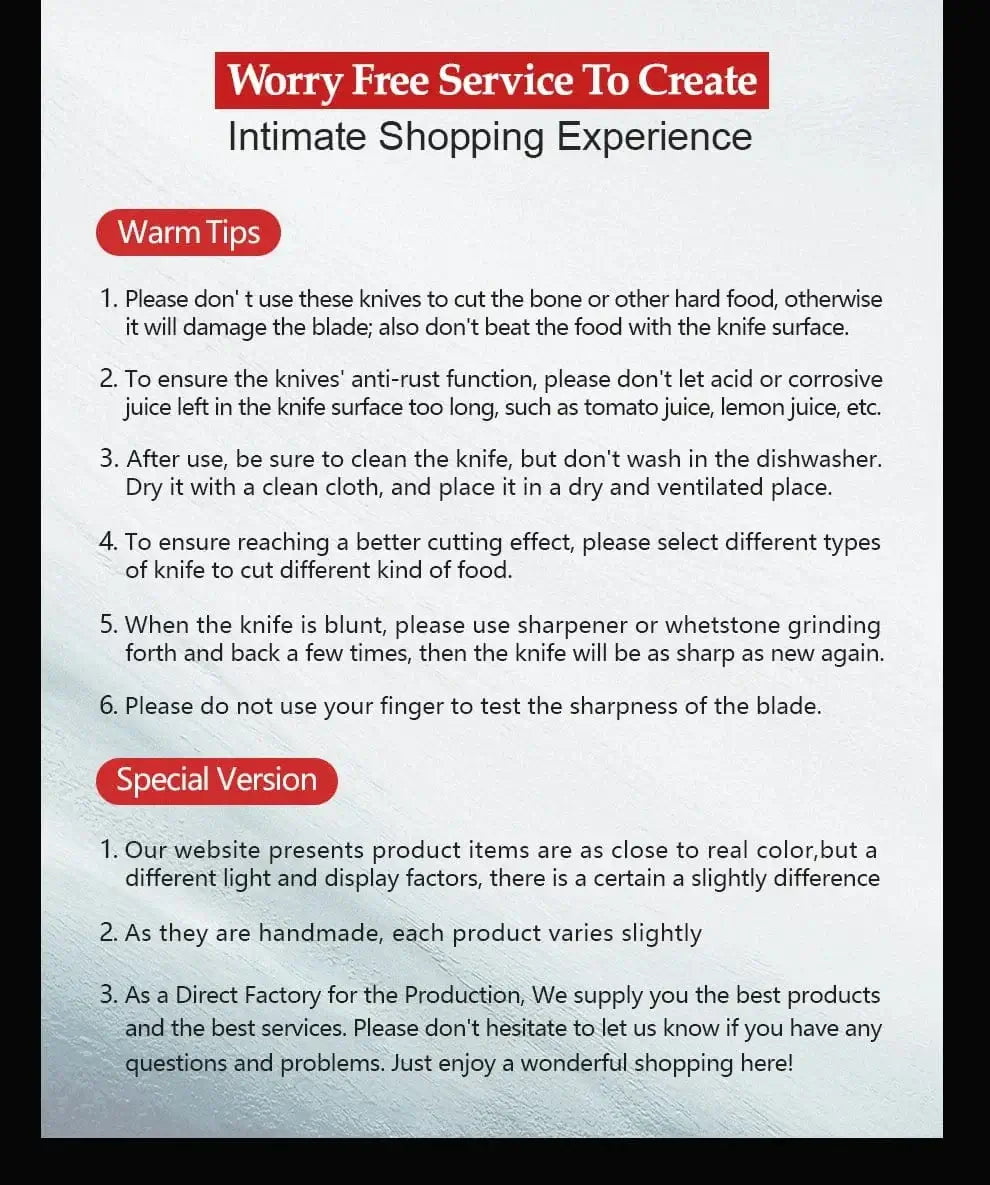 Blade Material:1.4116 Molybdenum Vanadium Steel of Germany ThyssenKrupp Ggroup