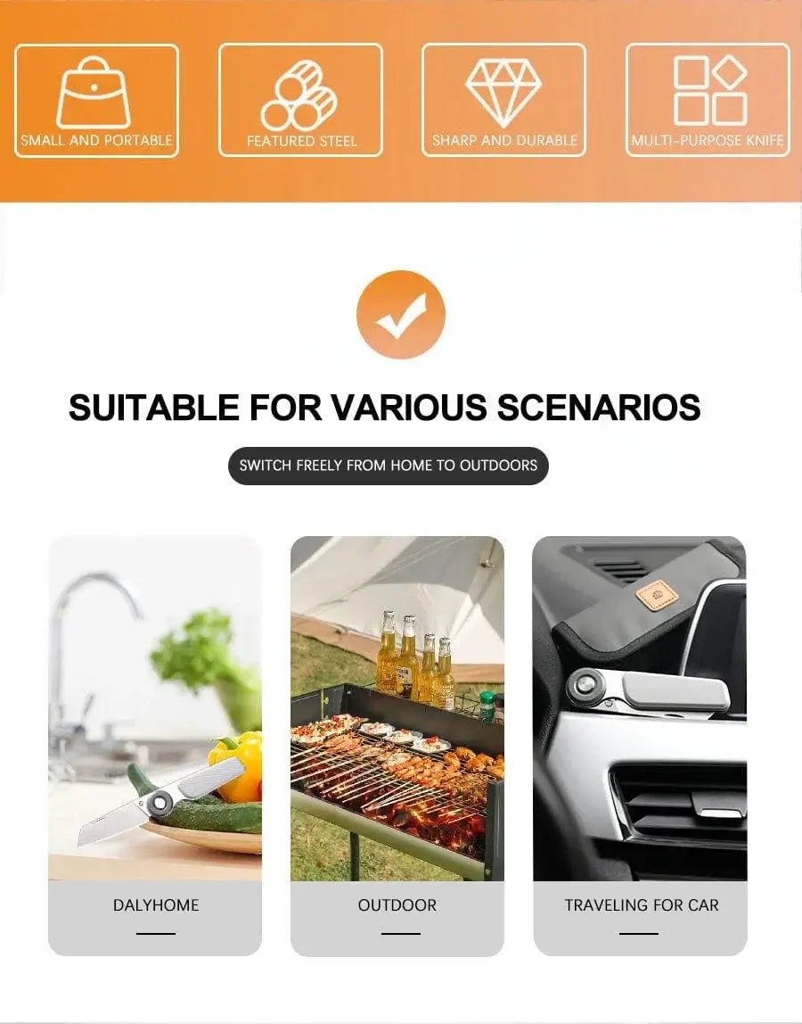 The outdoor camping knife made of Food Grade ABS material is lightweight, compact, and exquisite. Cutting fruits is non-toxic and harmless